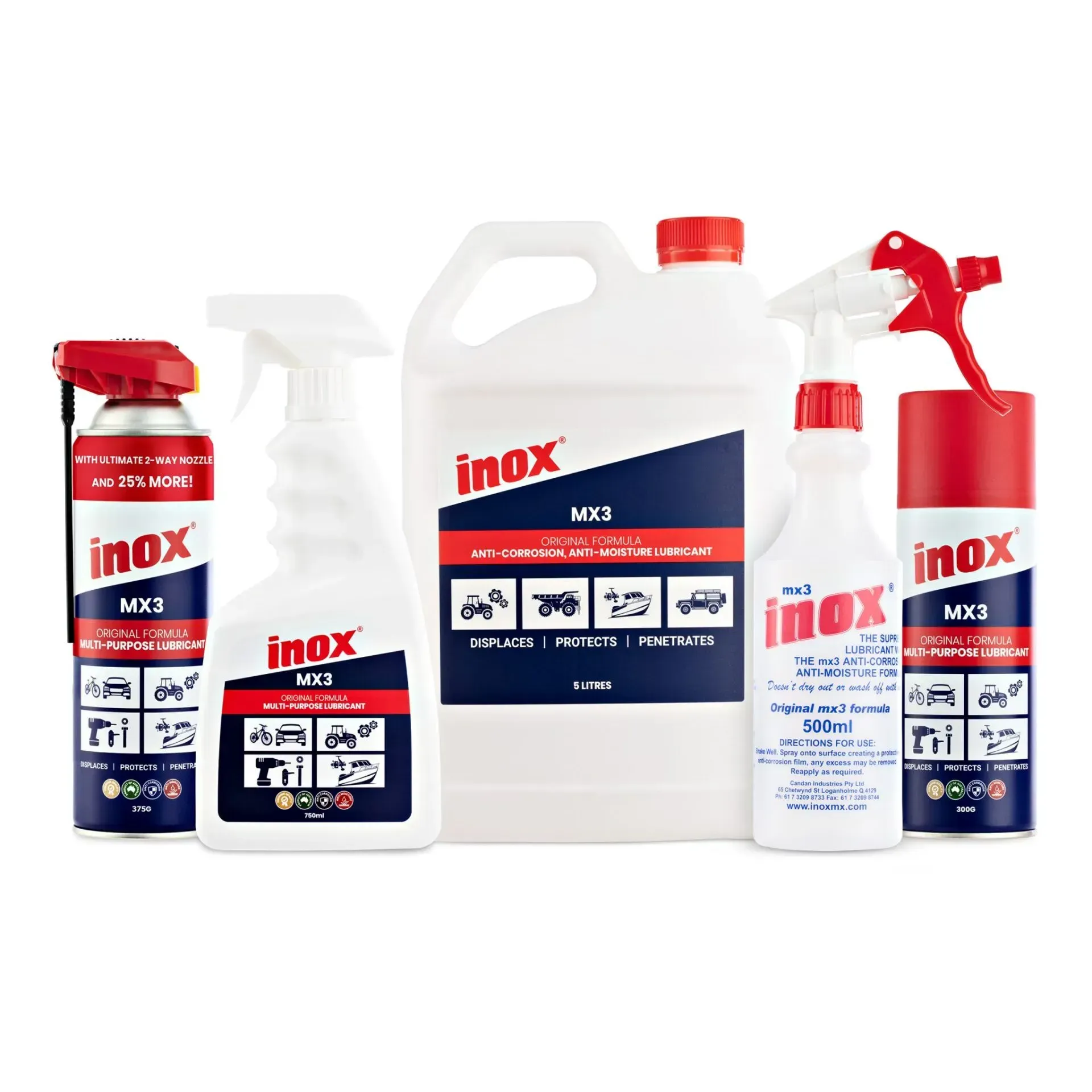 The MX3 range comes in 100g, 300g, 375g aerosol cans. Also available in 5litre bottle or a 20litre drum with a bonus applicator bottle!